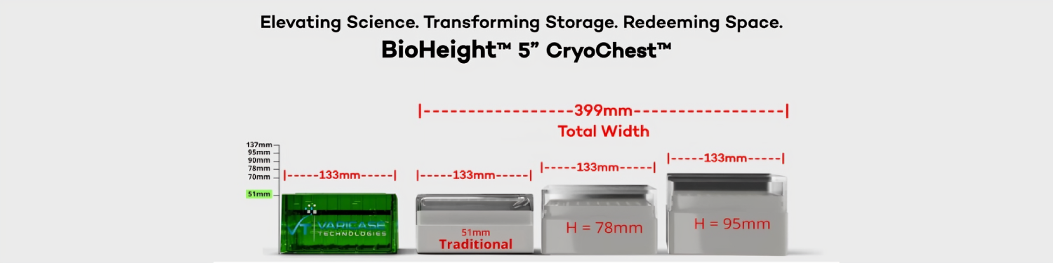 Varicase™ has launched the Heightbox™ collection, and we've gone to market with our flagship product - The BioHeight™ CryoChest™, a cryostorage cryo box currently on sale in the life sciences sector. One HeightBox ™ transforms into four heights, resulting in the use of 1 SKU while eliminating 3 SKU's for packaging. The innovative BioHeight™ is transforming labs across the country, and its sustainable engineering eliminates the “Swiss-cheese” effects for racks that have multiple unused cells (60% of freezer capacity is used nationally according to a report from NHLBI - National Heart, Lung and Blood Institute's report on Biorepository storage efficiency), consolidating inventory, and standardizing SKUs. The sustainable result: fewer freezers to buy and power, lower carbon emissions, and faster retrieval across biobanking, clinical, and research workflows. If your freezers are storing more air than samples, BioHeight™ makes capacity, cost, and sustainability gains immediate—before the next consolidation wave. The BioHeight™ boasts an amazing VEC 9.9/10
